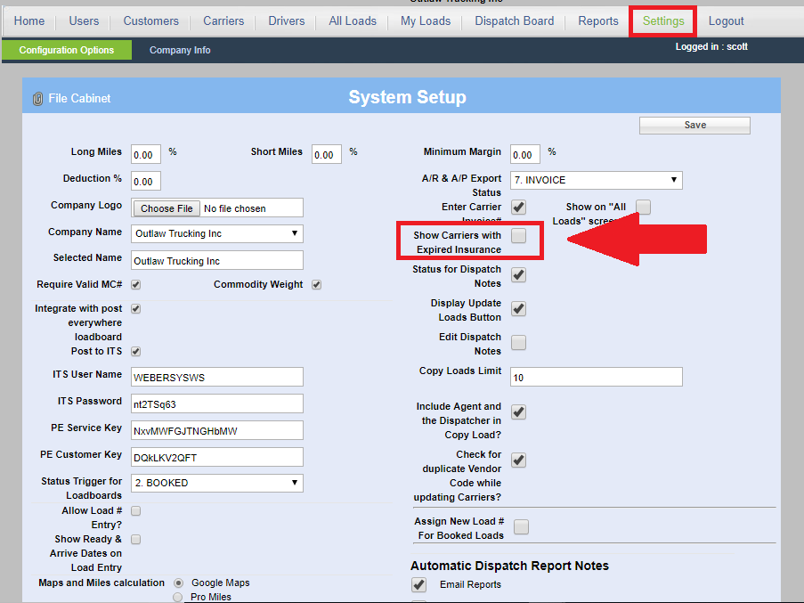 As long as you have already saved the Carrier into the system, they should appear when you start typing their name into the Carriers area. If they are not appearing, you most likely have the Setting "Show Carriers with Expired Insurance" turned off. You can either turn this setting on, or update the Carrier's insurance with current info.