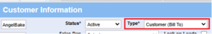 Ensure that the Type field is set to Customer(Bill To). If not, update this setting.
